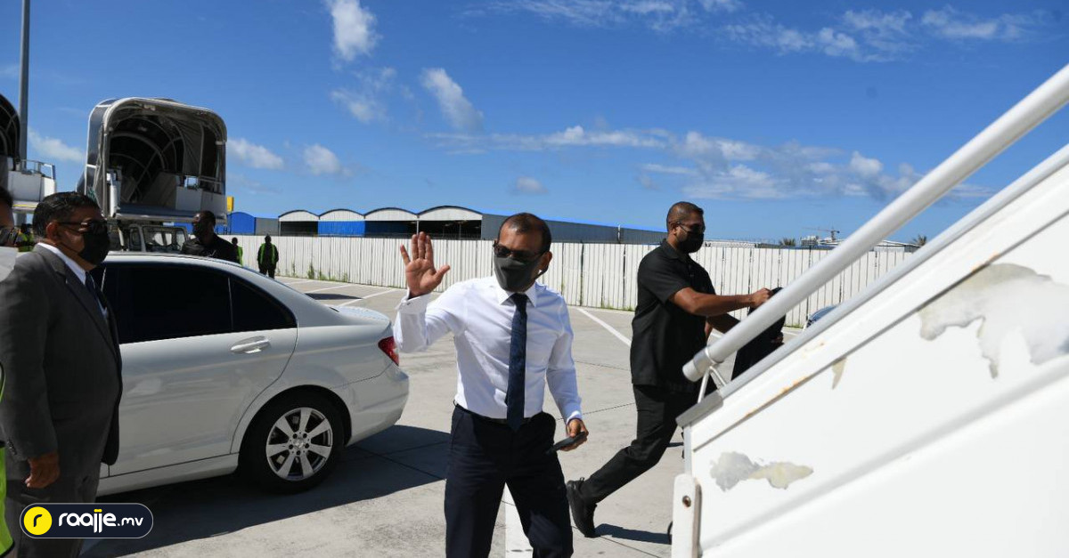 Former President and Parliament Speaker Mohamed Nasheed has departed on his official trip to attend the 26th United Nations Climate Change Conference (COP26), slated for November to be held in Glasgow, Scotland.