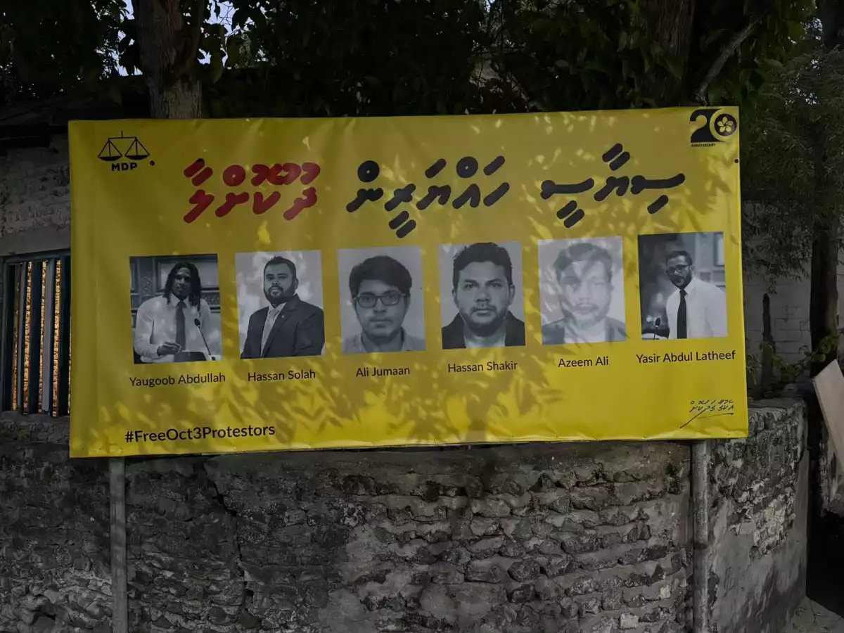 އޮކްޓޯބަރު 3 ގެ މުޒާހަރާއިން ހައްޔަރުކުރި 6 މީހުން ދޫކޮށްލުމަށް ގޮވާލާ ޖަހާފައިވާ ޕޯސްޓަރެއް