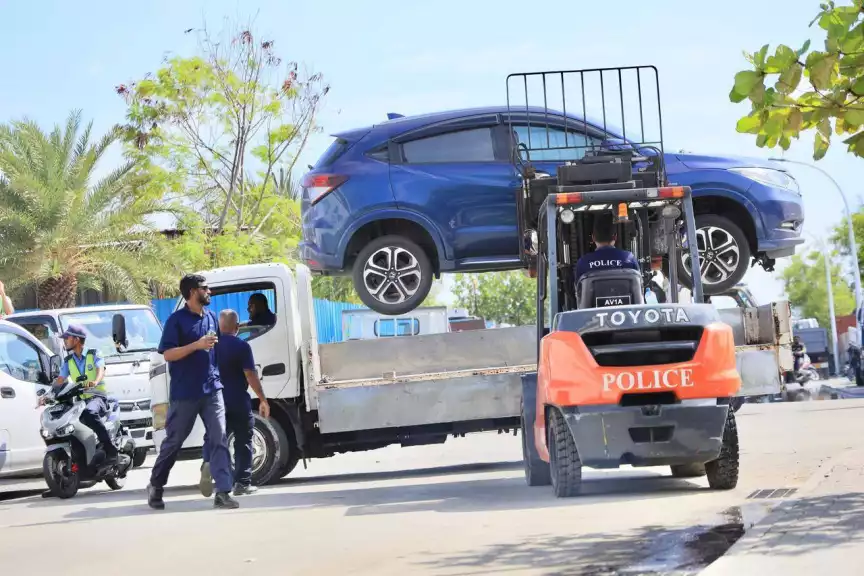 ގަވައިދާ ޚިލާފަށް ޕާކްކޮށްފައި ހުރި އުޅަނދުތައް ނެގުމަށް ފުލުހުން ޚާއްސަ ޓޯ އުޅަނދެއް ބޭނުންކުރަން ފަށާފަ