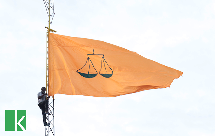 The flag was hoisted after the walk held by island residents on Tuesday, to celebrate the opposition coalition’s momentous win in the Presidential Election held on Sunday.