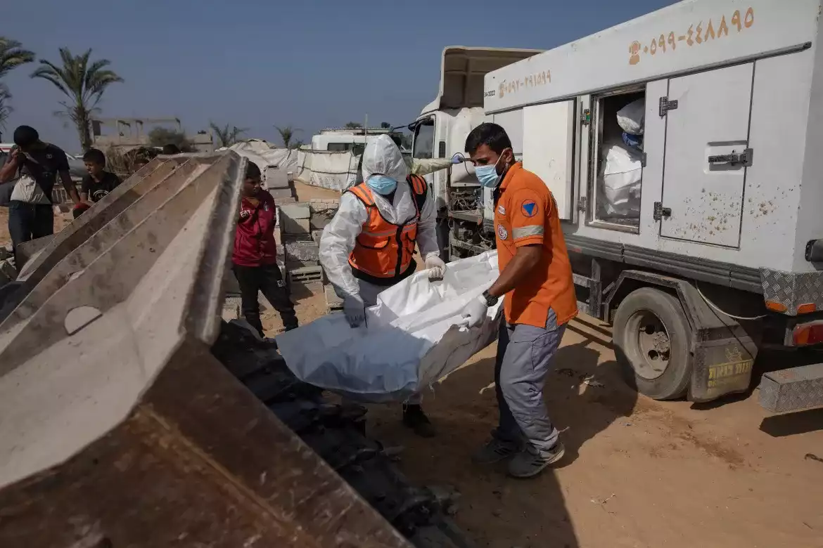 އެމެރިކާ އިން އެކުލަވާލި ހަނގުރާމަ ހުއްޓާލުމުގެ އެއްބަސްވުމުގެ ދަށުން އިޒްރޭލުން ވަނީ މަރުވެފައިވާ ކޮންމެ މީހަކަށް ފަލަސްތީނުގެ 15 މީހެއްގެ ހަށިތައް އަނބުރާ ދިނުމަށް އެއްބަސްވެފައި - ފޮޓޯ: އީޕީއޭ