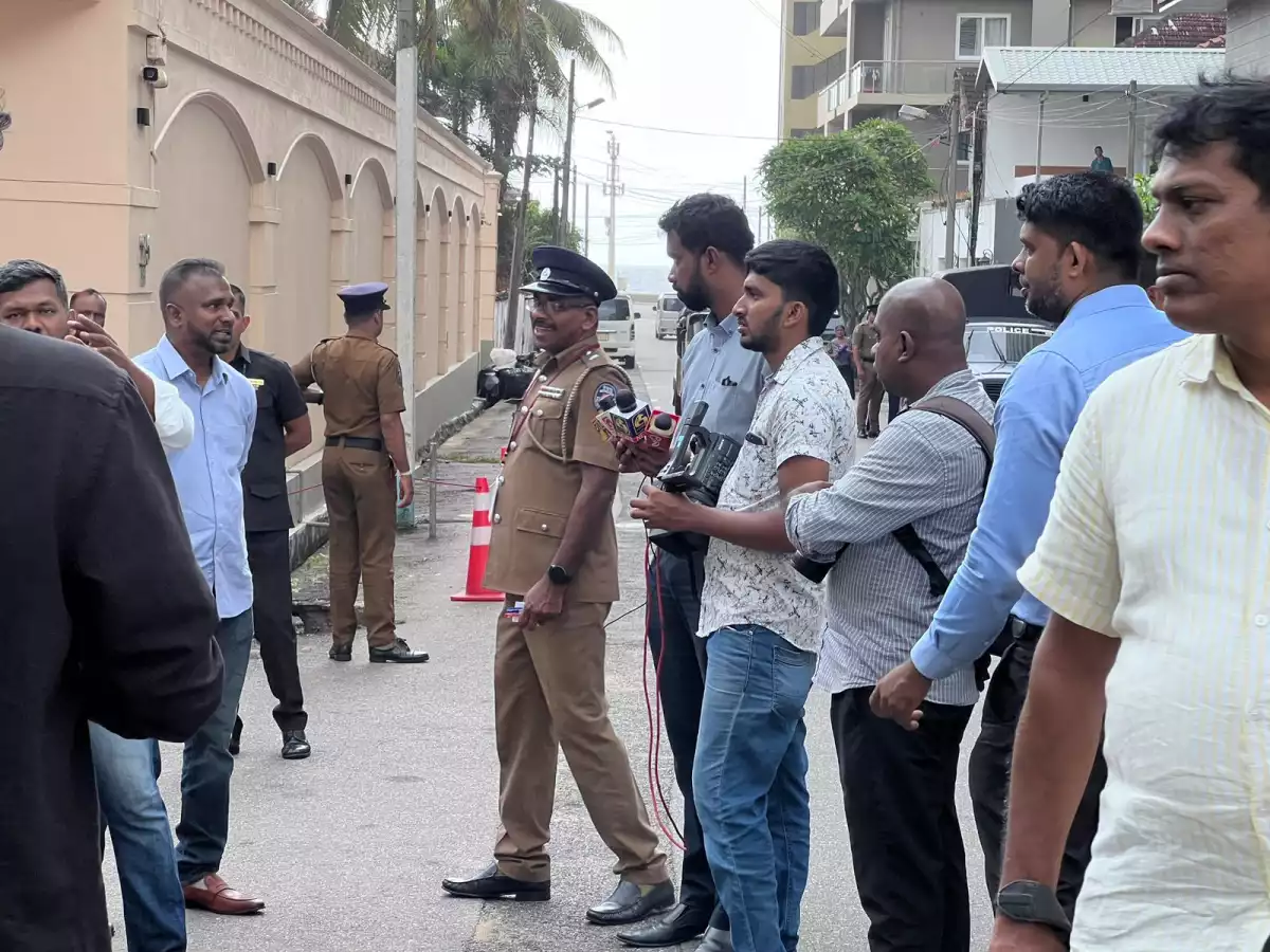 މީޑިއާ ކޮންޓްރޯލް ބިލާ ދެކޮޅަށް ސްރީލަންކާގައި ހުންނަ ރާއްޖޭގެ ހައި ކޮމިޝަން ކައިރީގައި ނޫސްވެރިން މުޒާހަރާ ކުރަނީ - ފޮޓޯ: އެކްސް