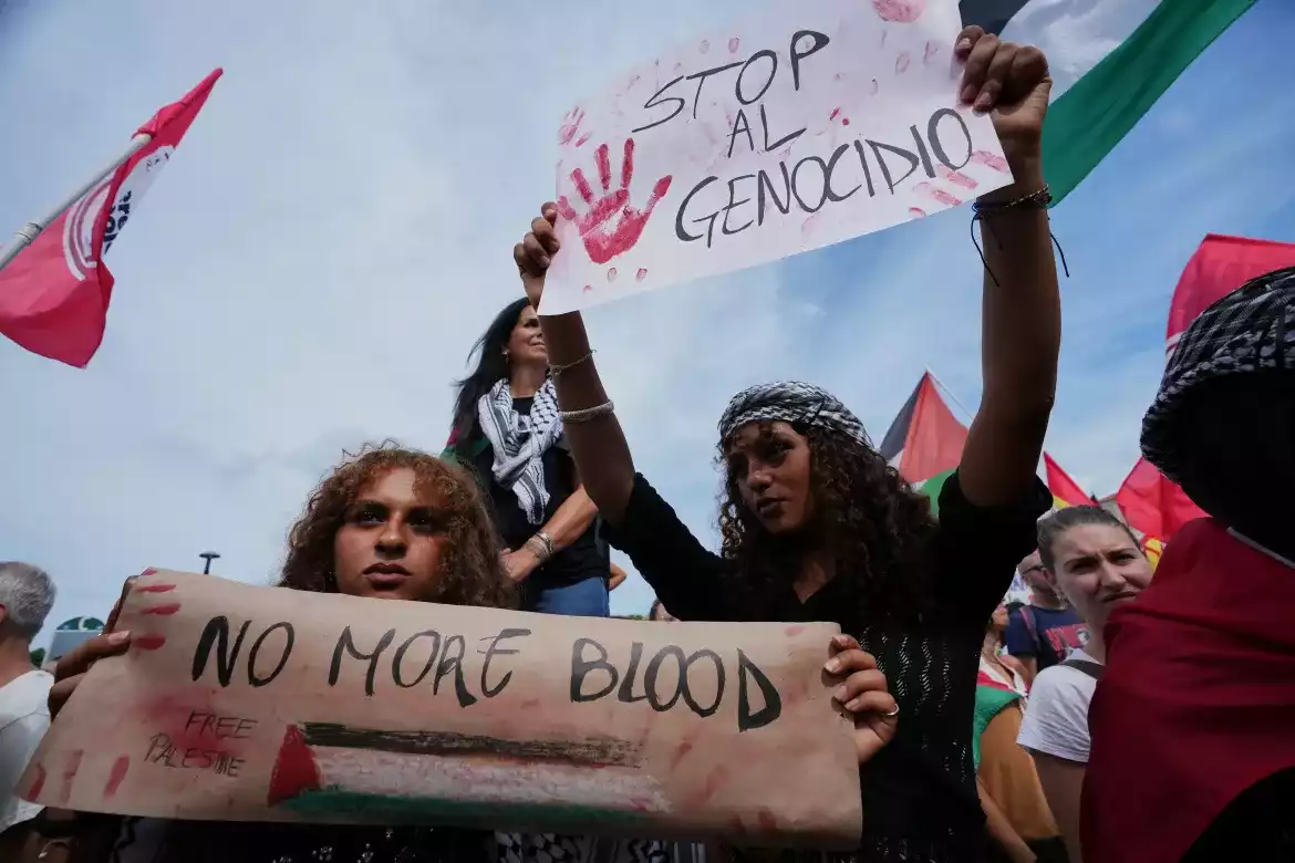 ޣައްޒާގައި ހިނގަމުންދާ ހަމަނުޖެހުންތަކާ ދެކޮޅަށް ރޯމްގައި ކުރި މުޒާހަރާގެ ތެރެއިން - ފޮޓޯ: އޭޕީ