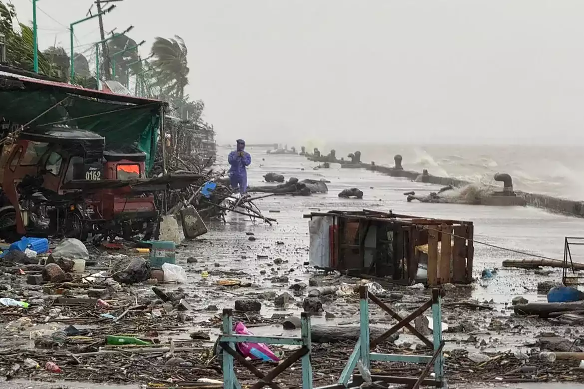 ކަގަޔަން ޕްރޮވިންސްގެ އަޕާރީ ޓައުންގައި ބޯކޮށް ވާރޭ ވެހެމުންދާ ވަގުތެއްގައި، ވޯޓާ ފްރަންޓް މަގެއްގެ ކައިރީގައި މީހަކު މަޑުކޮށްލައިގެން - ފޮޓޯ: އޭއެފްޕީ
