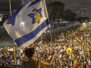 ޣައްޒާ ހަނގުރާމަ ފުޅާ ކުރުމަށް ނަތަންޔާހޫ ގެންގުޅޭ ސިޔާސަތާ ދެކޮޅަށް އެތައް ހާސް މީހުން އިސްރާއީލުގެ މަގުތަކަށް ނުކުމެއްޖެ
