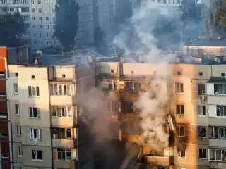 ރަޝިޔާ އިން ދިން ހަމަލާގައި ޔުކްރެއިން ސަރުކާރުގެ އިމާރާތެއްގައި އަލިފާން ރޯވެއްޖެ